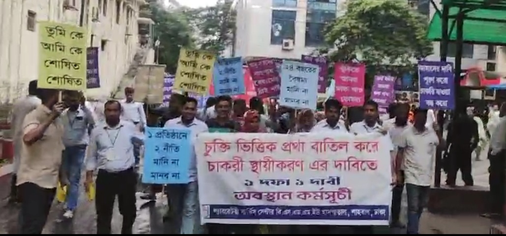 চাকরী স্থায়ীকরণের দাবিতে অবস্থান কর্মসূচি